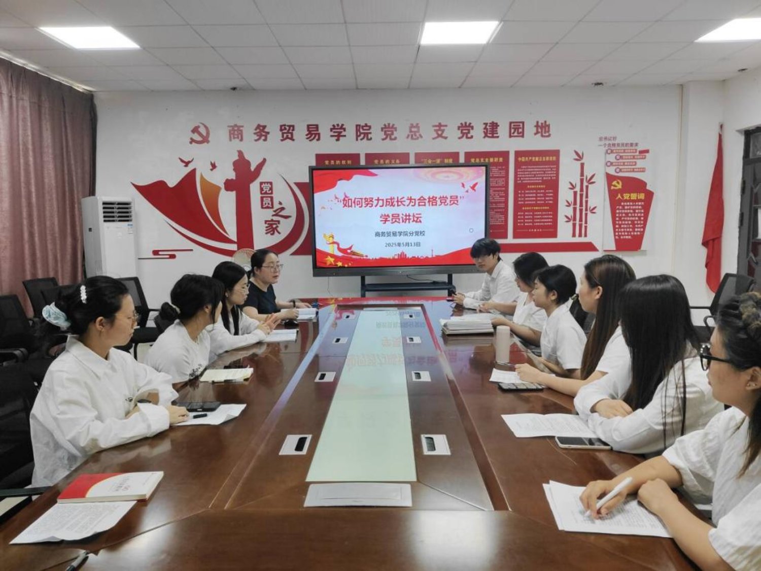 5月13日,商务贸易学院分党校在励志楼136会议室举行2025年上半年党员发展对象“合格党员标准”专题研讨会。学院学工党支部书记王馨颖、支部委员胡文梅出席活动,与9名大学生党员发展对象围绕"如何努力成为合格党员"主题展开深入交流。