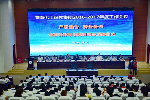 6月10日上午,湖南化工职教集团2016—2017年度工作会议在我校图书馆大型报告厅隆重召开。湖南省教育厅副厅长应若平、省石化行业离退休人员管理服务和后勤保障中心主任蒋加新、省经信委原材料工业处处长孟建华、省石油化工行业协会秘书长张健、海利集团副总经理丁民、株洲中车天力锻业有限公司董事长韩军、巴陵石化公司人力资源部副部长刘波、中盐株化总经理彭青松、楚天科技有限公司人力资源部总监唐斌、湖南石油化工职业技术学院副院长符文文、湖南化工职教集团企业界代表、集团兄弟院校代表及我校教师、学生代表等近500人出席会议?;嵋橛晌倚5澄榧橇跬鞒?。