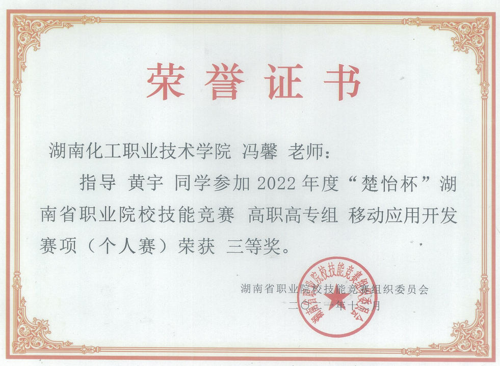 移动应用开发赛项 省级三等奖 |