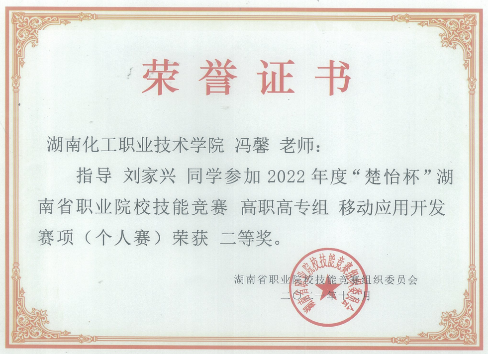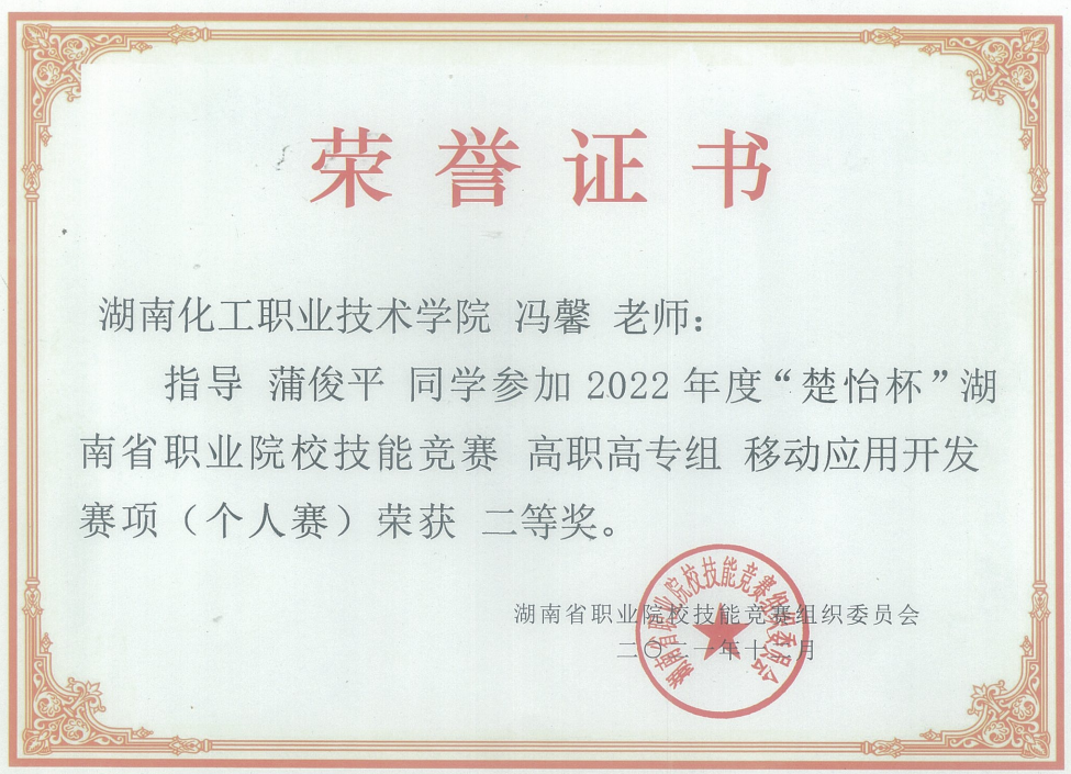 移动应用开发赛项 省级二等奖 |
