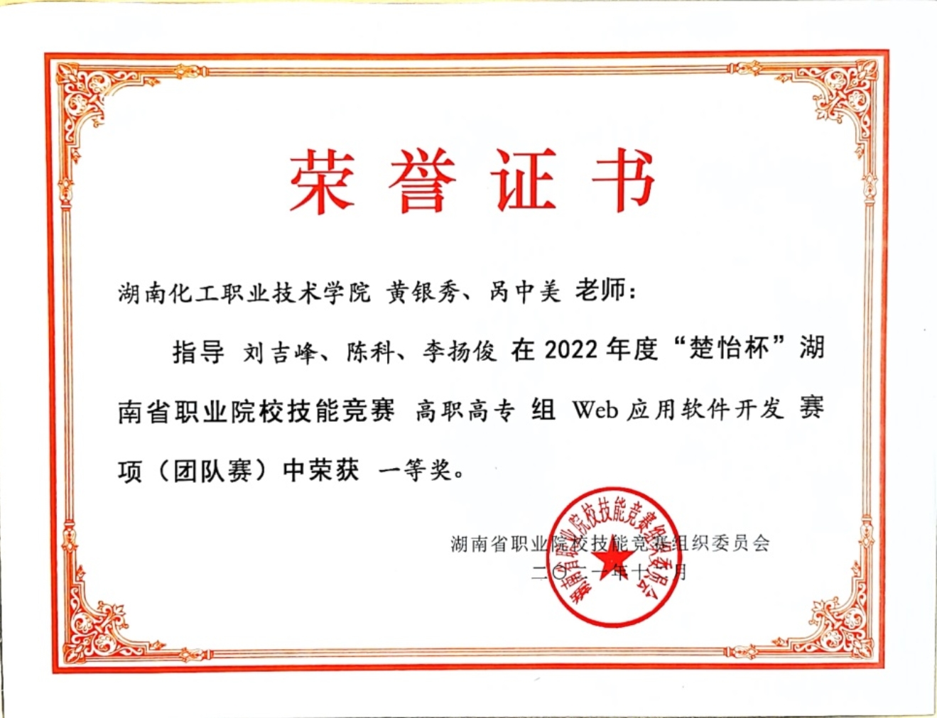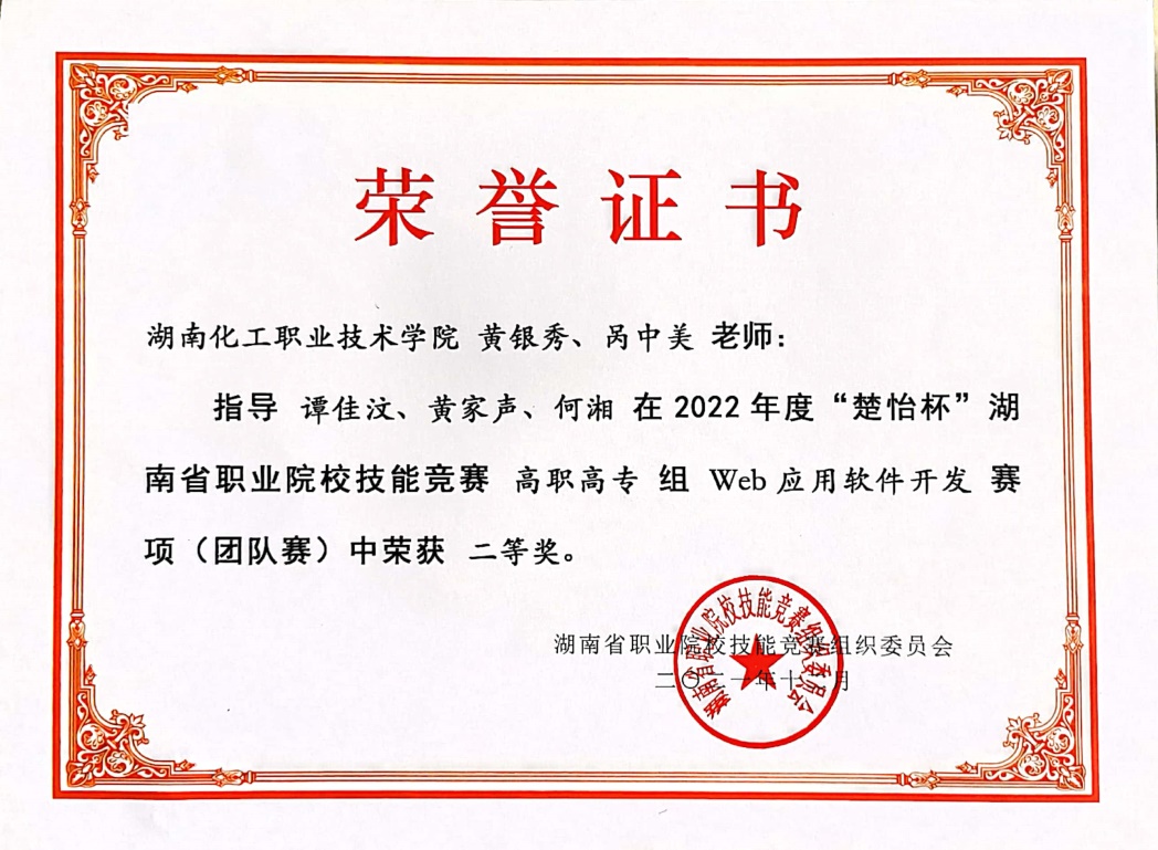 WEB应用软件开发赛项 省级二等奖 |