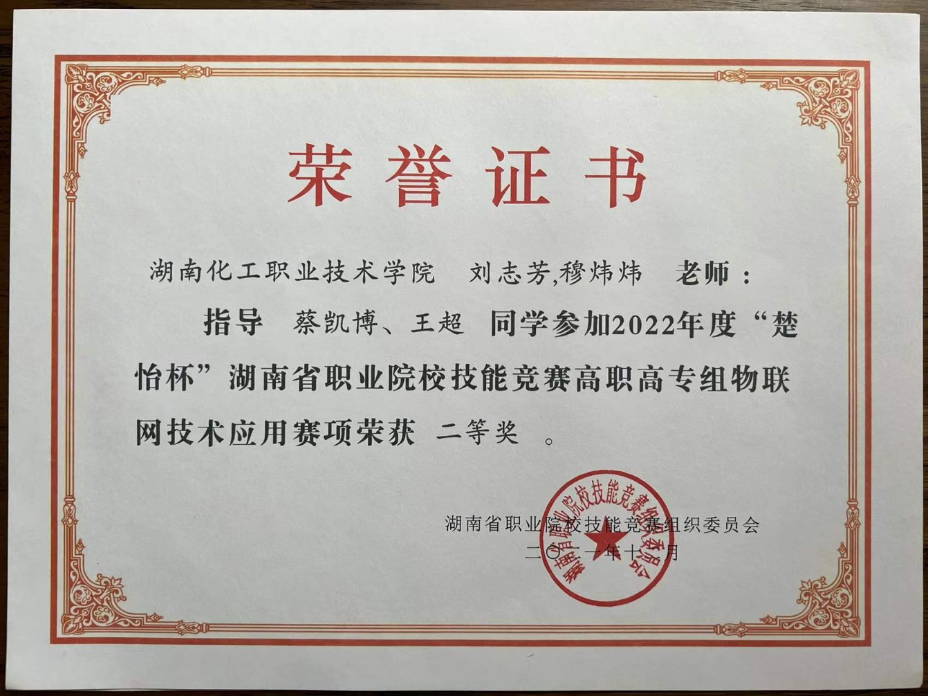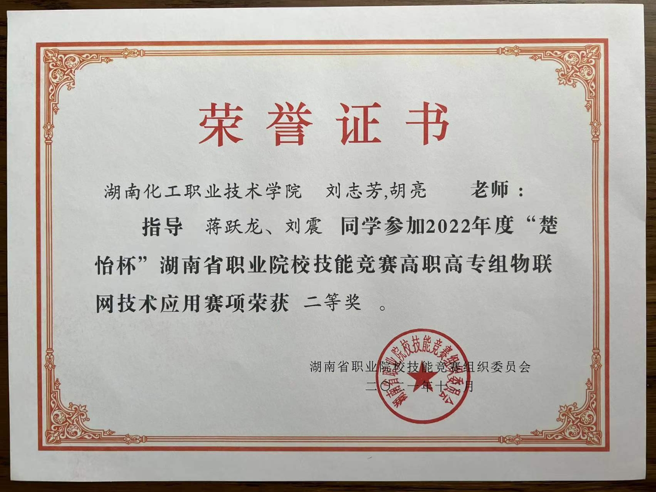 物联网技术应用赛项 省级二等奖 |