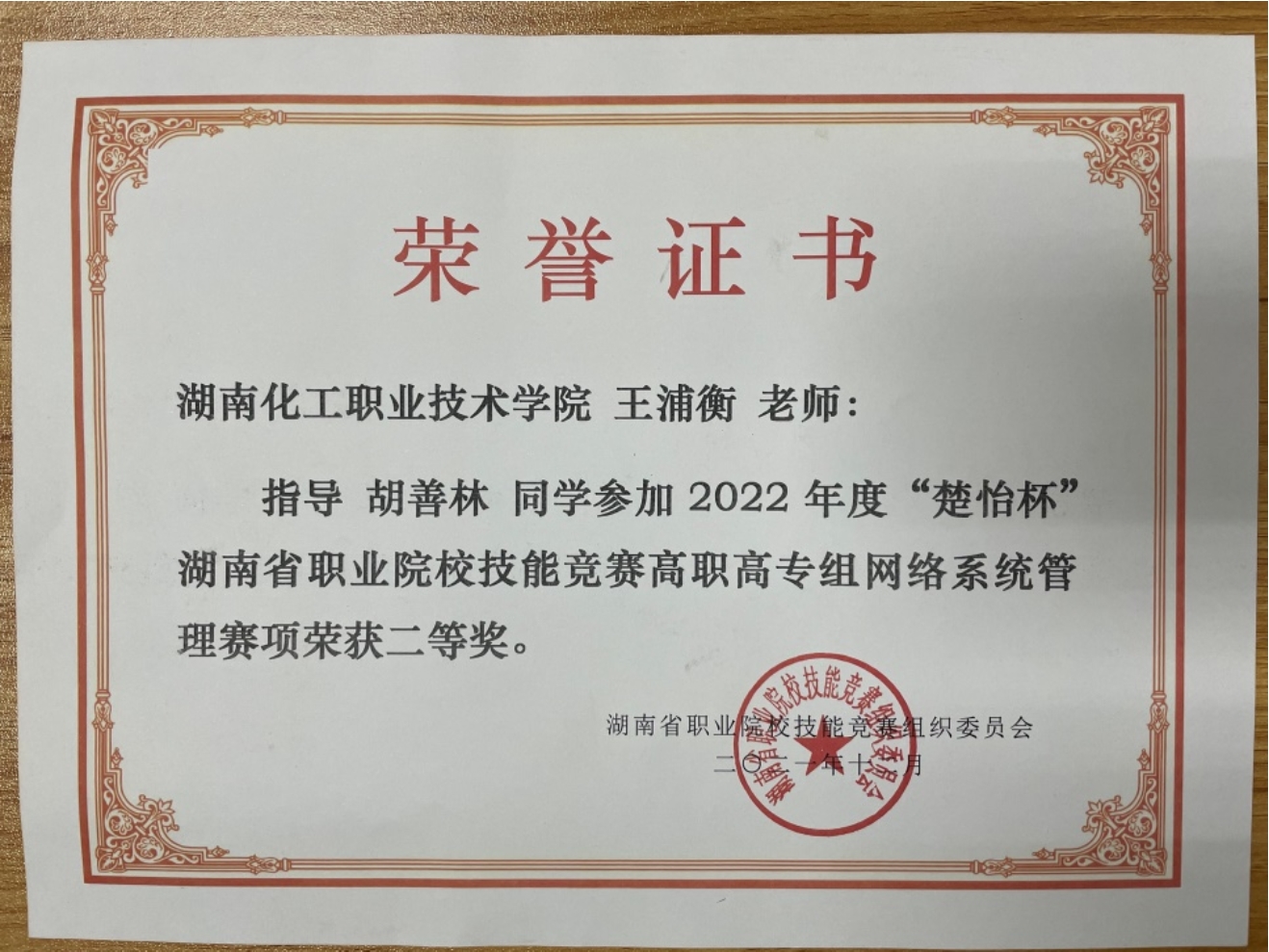 网络系统管理赛项 省级三等奖 |