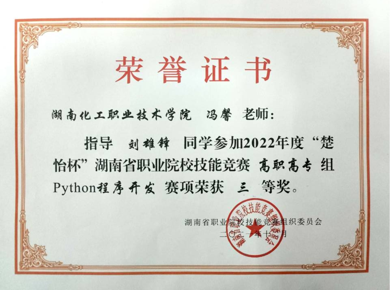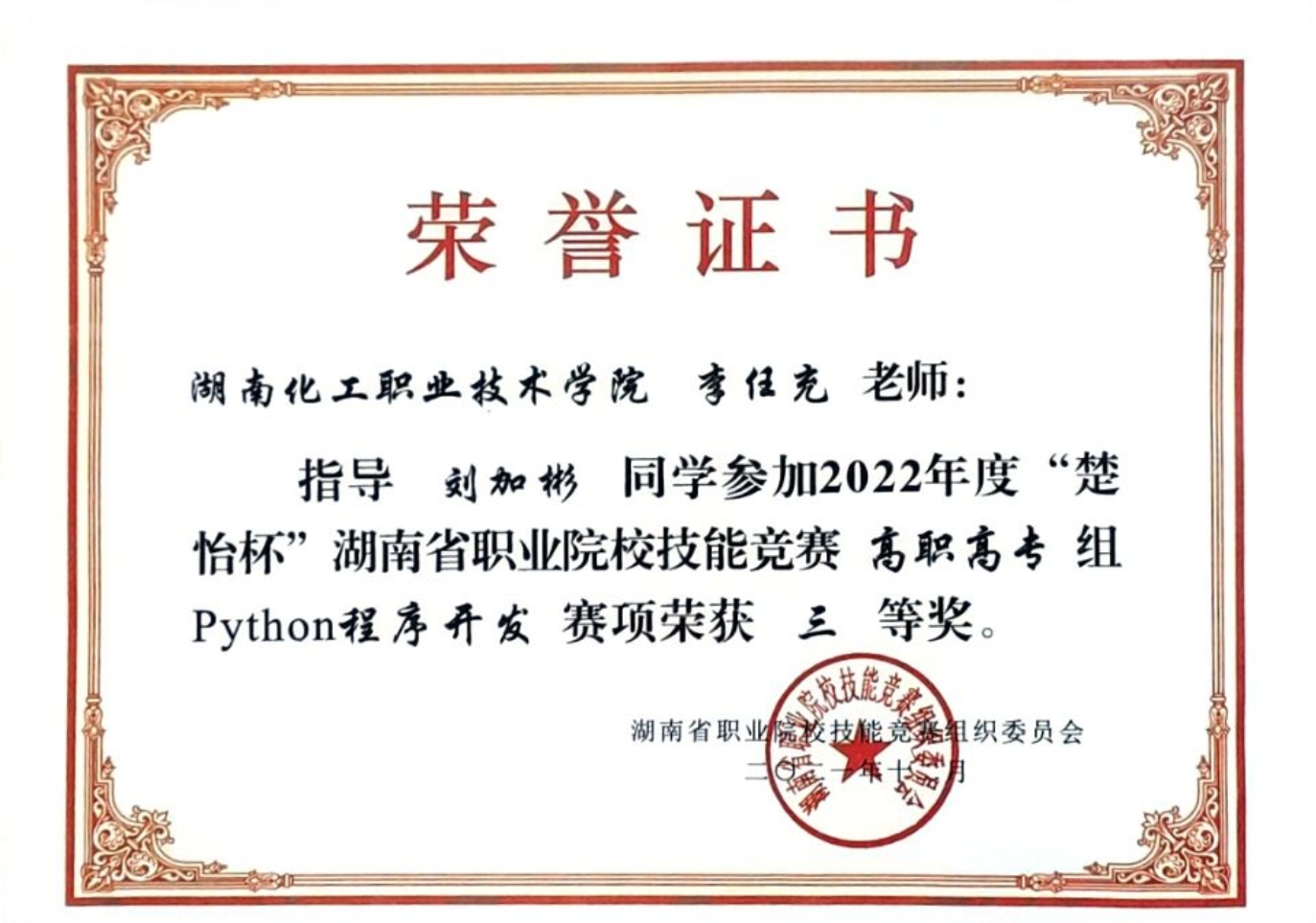 Python程序开发赛项 省级三等奖 |