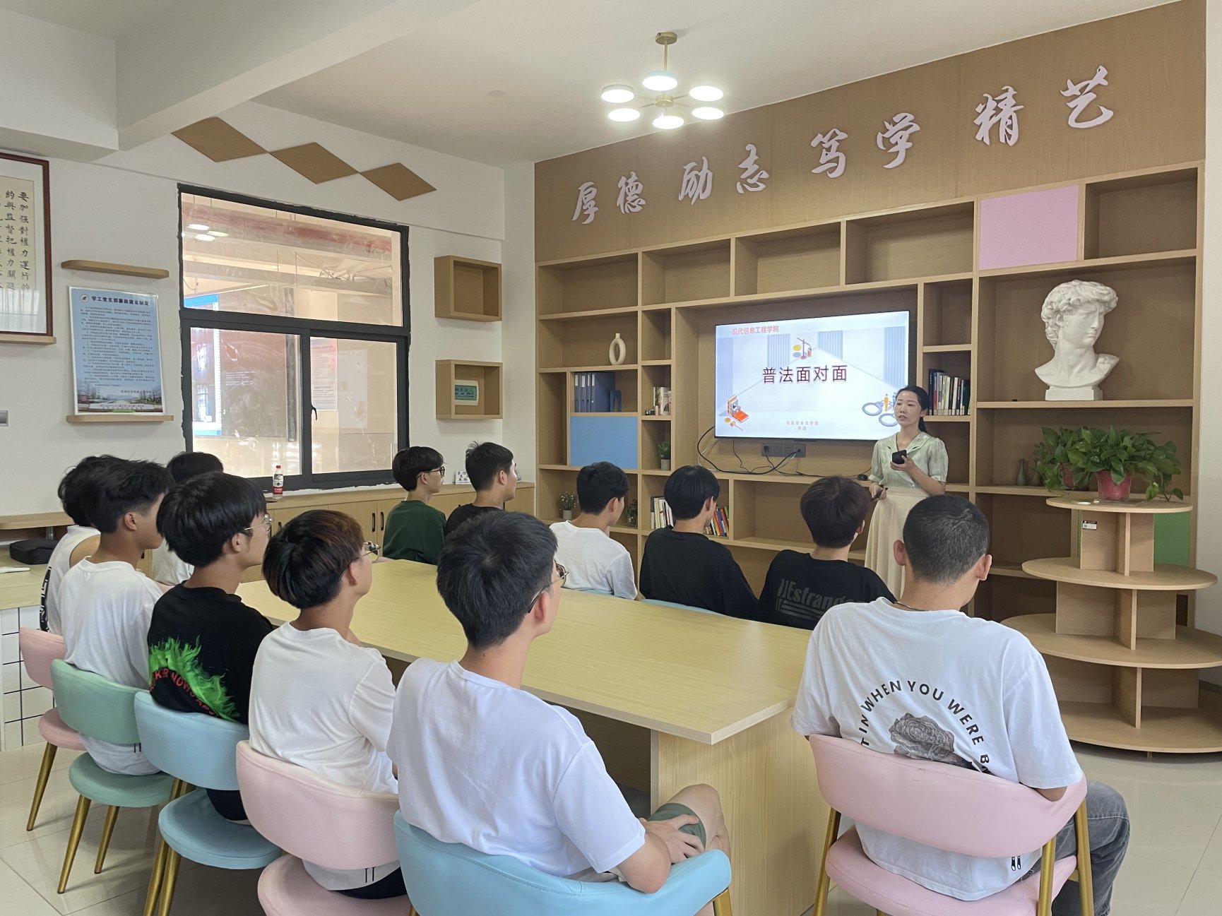 为全面落实学校推动一站式学生社区文化内涵建设,贯彻“三全育人”理念,切实将领导力量、思政力量、管理力量、服务力量下沉到一线,9月10日下午,在学生宿舍五栋一站式学生社区,现代信息工程学院特别邀请马克思主义学院副院长李菡举办“普法面对面”沙龙,该院领导班子成员及20名团学骨干参加沙龙。
