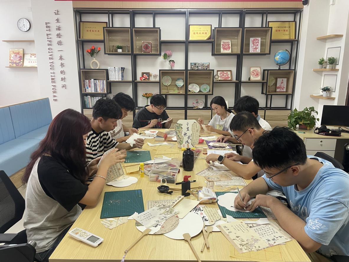 “颠倒横斜任意铺,半页仍存半页无。莫道几幅残缺处,描来不易得相符?!苯髦帧捌评谩倍鸭Γ庵直鸪鲂牟玫囊帐趺爬?,便是“锦灰堆”。9月3日下午,现代信息工程学院“薪火”非遗工坊在五栋一站式学生社区,举行“锦灰堆”团扇制作活动,在感受破而后立的艺术之美中,让非遗文化“活”起来。