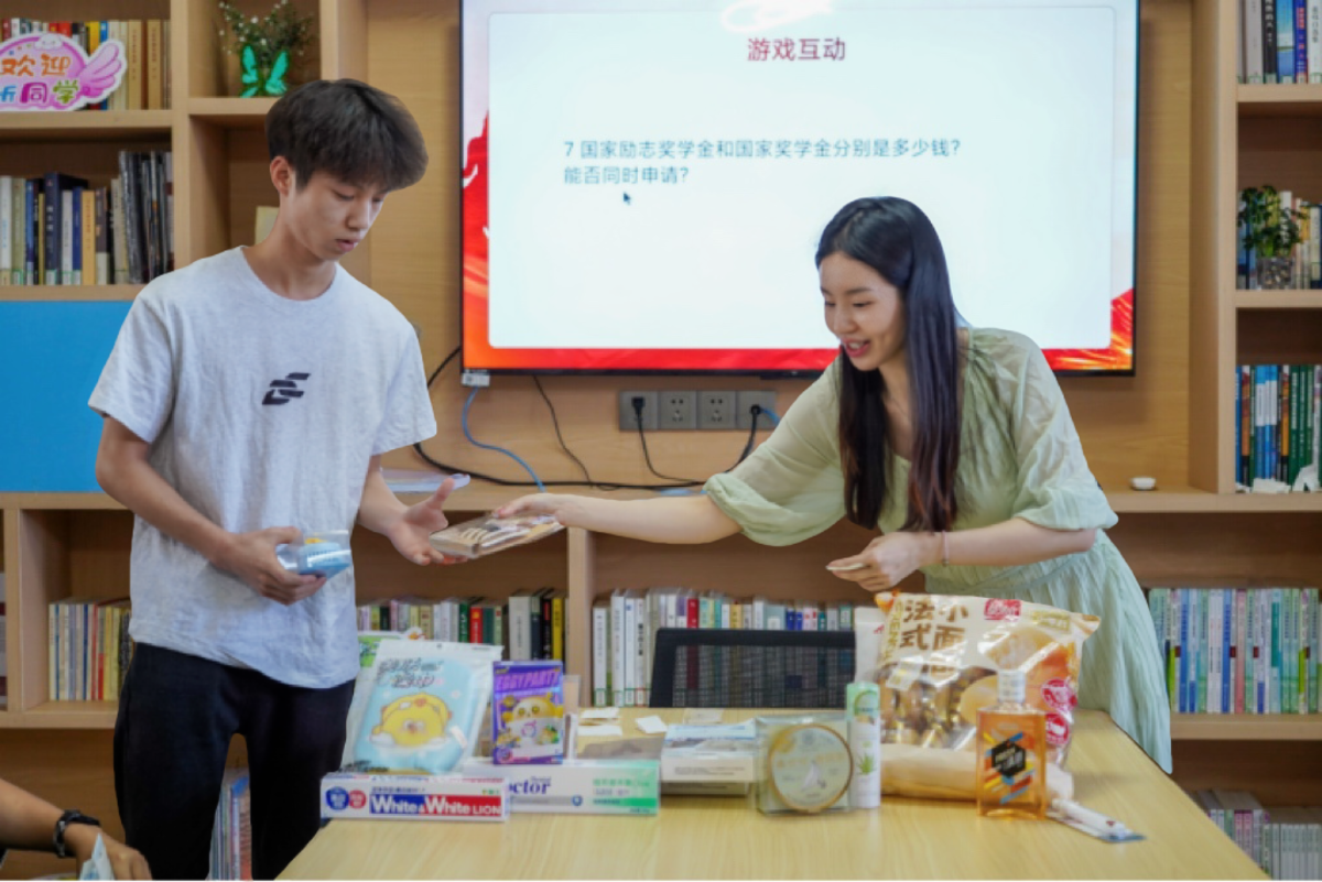 谢燕强以“国家资助政策全知道”为主题展开系统讲解,重点解读助学贷款、奖助学金、勤工俭学等政策实施细则。听了谢燕强的讲解后,同学们表示,“以前对续贷流程一知半解,今天终于理清了时间节点和材料清单?!蔽銮炕疃の缎?,现场还特别设置国家资助政策问答互动环节,同学们通过回答问题可以获得相应的奖品。