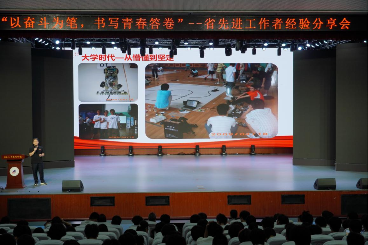 6月5日,现代信息工程学院在学校大礼堂举行了“以奋斗为笔 书写青春答卷——省先进工作者经验分享会”?;疃匮昂鲜∠冉ぷ髡摺被竦谜?、学院专任教师刘志芳进行专题讲座。学院班子成员、全体科级干部、专职辅导员及学院2023级、2024级近千名学生参加了本次活动。活动由侯小毛主持。