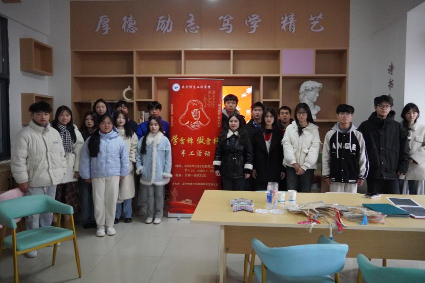 学习雷锋好榜样,雷锋精神万古传。为进一步弘扬传统文化,学习雷锋精神,3月5日下午,现代信息工程学院在5栋一站式社区开展“学雷锋 做雷锋”手工活动,在唐子茵老师的指导下,同学们制作出各式各样的雷锋造型手工作品,以他们喜欢的方式弘扬雷锋精神。