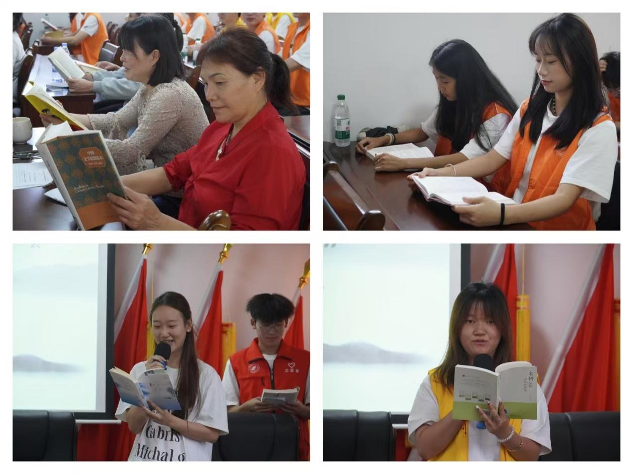 活动开始之前,学生志愿者热情地给大家分发书籍,与社区的群众们一起体验沉浸式阅读。阅读完后,志愿者代表和社区群众们先后上台分享自己的读书体会。
