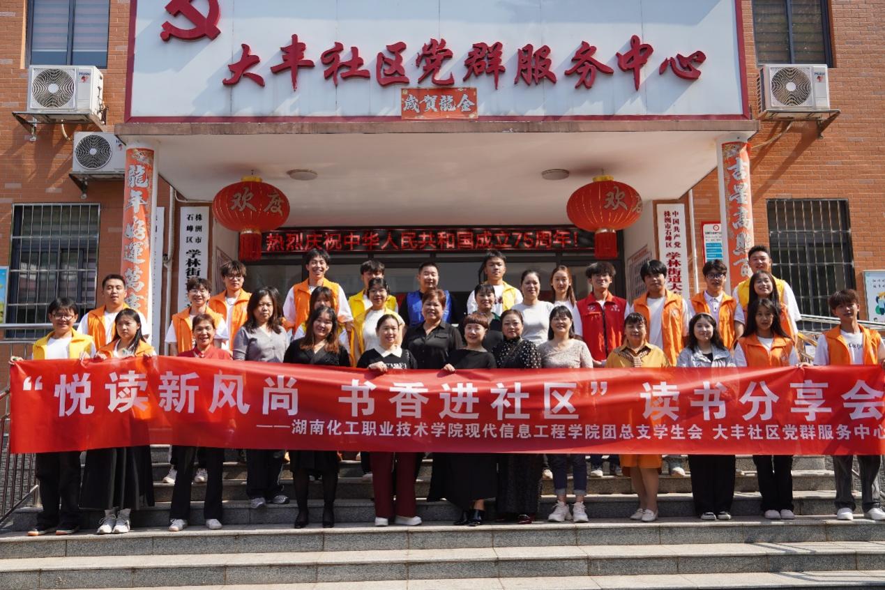 为深入贯彻落实党的二十大关于深化全民阅读活动的重要部署,传承职教“楚怡精神”,营造爱读书、读好书、善读书的浓厚氛围,10月11日,湖南化工职业技术学院现代信息工程学院联合株洲市云龙示范区学林街道大丰社区党群服务中心举办“悦读新风尚·书香进社区”读书分享会,现代信息工程学院团总支学生会全体干部以及大丰社区工作人员、群众代表参与本次活动。