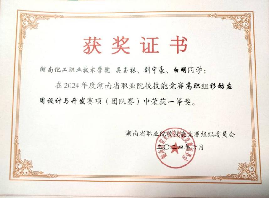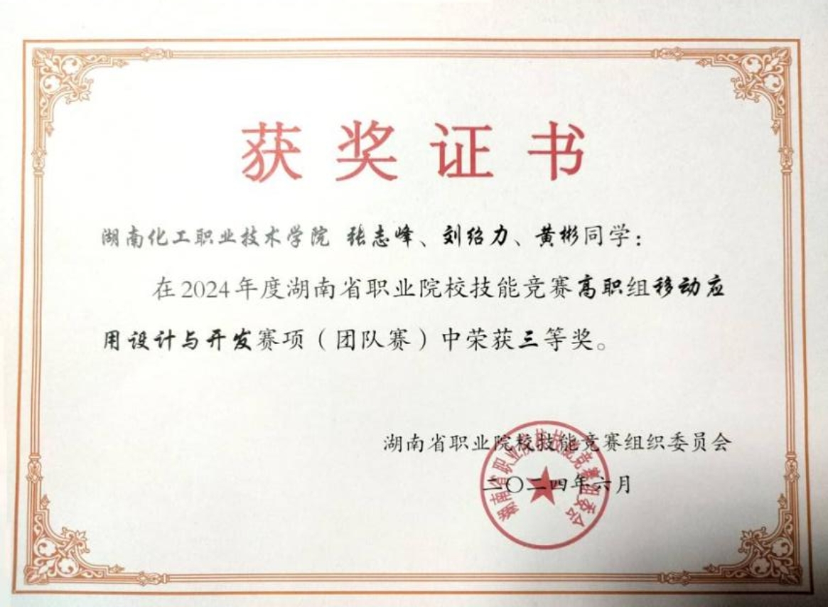 6月17日,由湖南省教育厅主办的2024年度“楚怡杯”湖南省职业院校技能竞赛移动应用设计与开发赛项在湖南邮电职业技术学院举行,来自全省46所院校85支队伍的255名精英学子们齐聚一堂,展开了一场激烈的技能较量。我院选派2支队伍参加,最终,冯馨老师、侯小毛老师指导的白明、吴玉林、刘宇豪团队荣获一等奖,张志峰、刘绍力、黄彬团队获三等奖。
