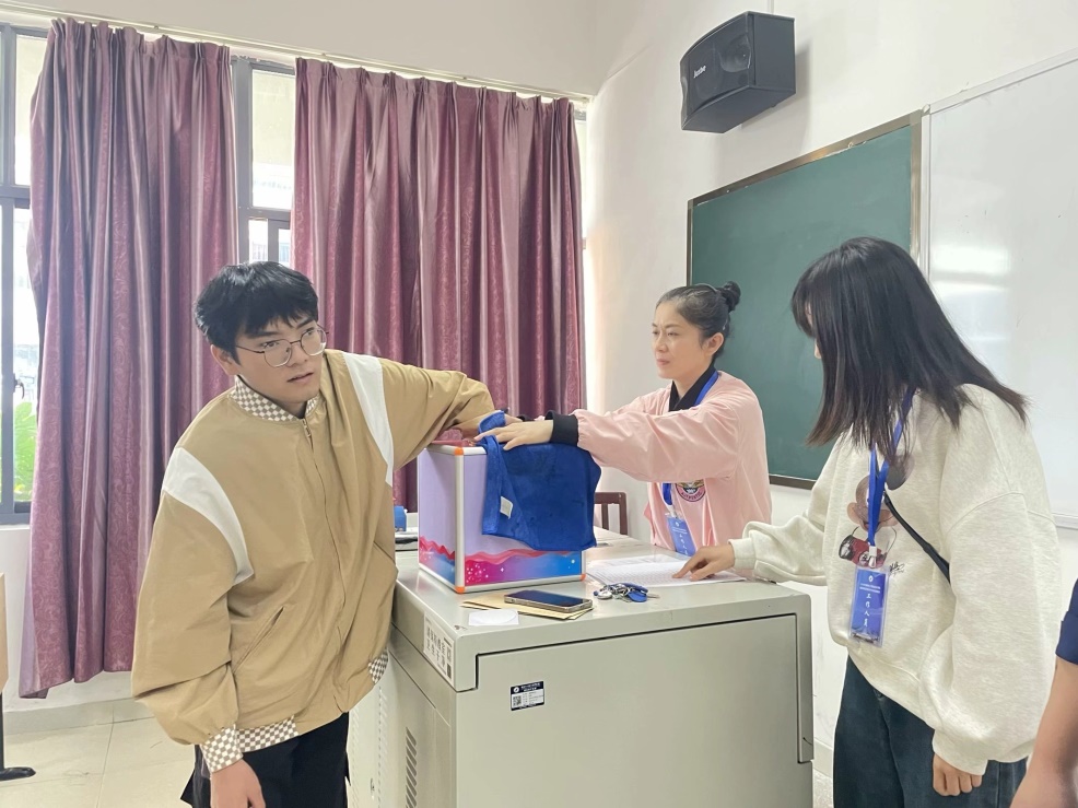 10月22日上午,参与抽查考核的28名同学依次抽取了模块号和题号,并开展专业技能考核??计雷樽槌げ芑⑸浇淌?、学院总支书记姜红辉、副院长侯小毛、副院长黄银秀等学院领导到技能抽查考核现场进行巡考。