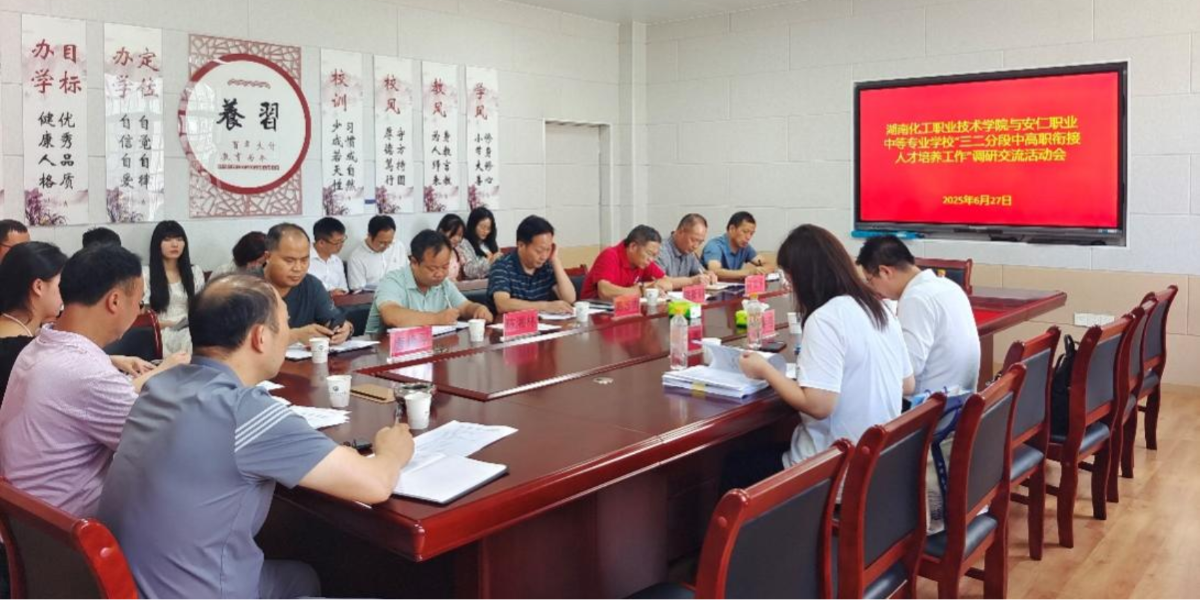 调研中双方进行了师生座谈,安仁职中校领导、相关职能科室负责人及三二分段班班主任、计算机专业教师等参加了座谈会?;嵘?,双方就三二分段中高职衔接班的人才培养工作进行了深入探讨和交流。
