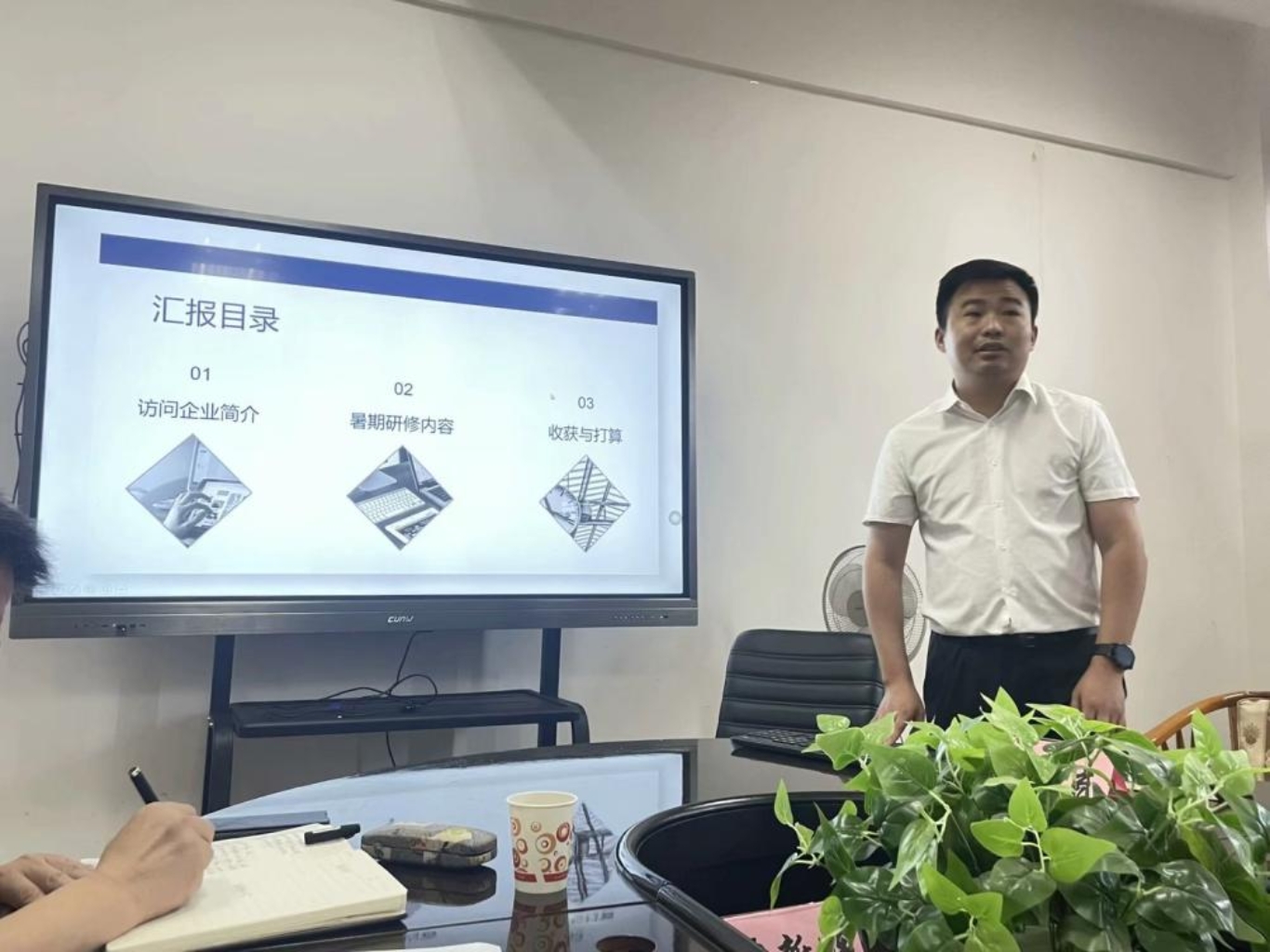 会上,李任充、谭新辉、熊群毓、周恒伟四位教师分别从企业介绍、实践内容、实践收获、下一步打算等四方面进行了热情洋溢的汇报,大家用图片、视频、表格、文本等方式有效展示了企业产品、实践岗位、实践项目、实践成果,详实再现了实践过程的真实场景和真切感受,对有幸参加学校安排访问工程师项目活动感到非常荣幸,对学校及学院的慰问指导表示感谢。