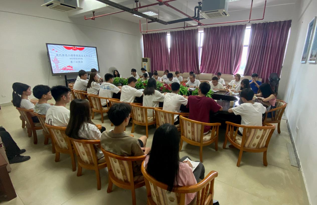 为进一步优化团总支学生会的组织结构,提升学生骨干的综合能力,现代信息工程学院于2023年9月11日召开了团总支学生会秋季学期第一次例会。学院党总支书记姜红辉、副院长侯小毛、党总支副书记刘三婷、学工党支部书记童双、团总支书记唐子茵出席本次会议?;嵋橛闪跞弥鞒帧?br>