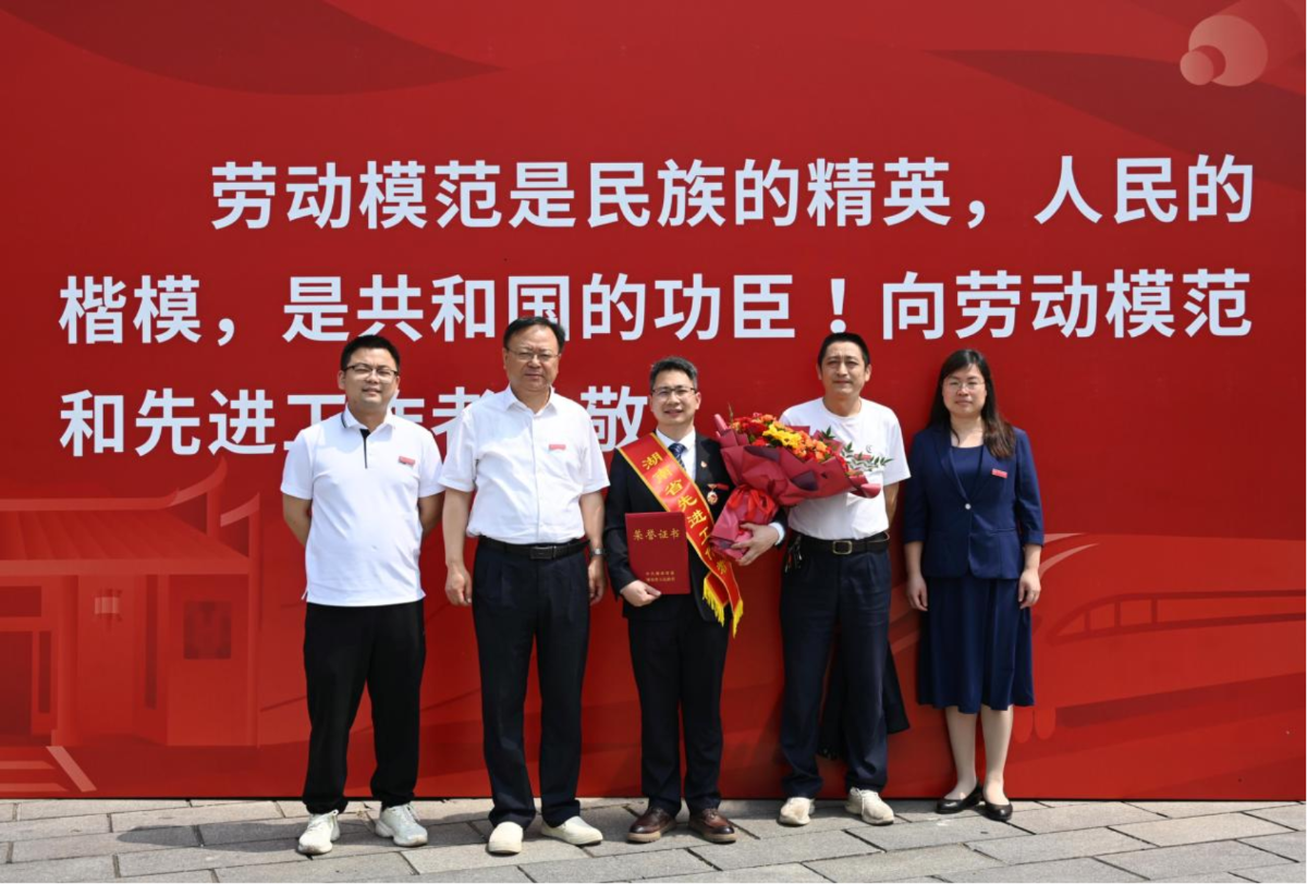 4月29日,2025年湖南省庆?!拔逡弧惫世投隰呃投7逗拖冉ぷ髡弑碚么蠡嵩诔ど尘傩?。我校现代信息工程学院的刘志芳老师凭借其在劳动竞赛、教育教学和科研创新等方面的突出业绩,被授予“湖南省先进工作者”荣誉称号。学校党委书记陈超率校工会、组织人事部和现代信息工程学院等部门工作人员亲自来到表彰大会现场向刘志芳老师表示祝贺并送上鲜花。