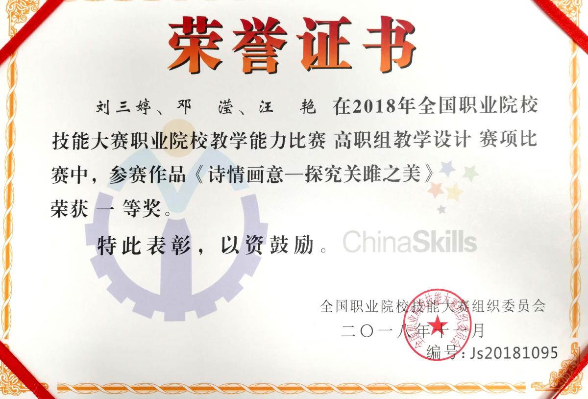 刘三婷、邓滢、汪艳获全国教学能力比赛一等奖