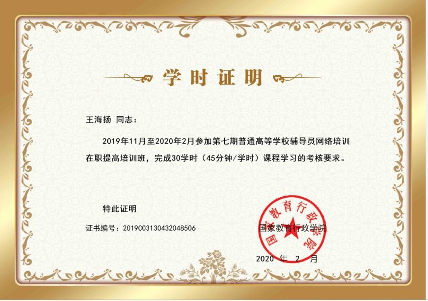 2月19日,教育部思政司党支部发出致全国高校辅导员的一封信。湖南化工职业技术学院辅导员做好学生疫情防控工作和学习充电两不误,参加国家行政学院第七期普通高等学校辅导员专题网络培训在职提高班学习的30名学员全部如期完成学业,拿到学时证明。