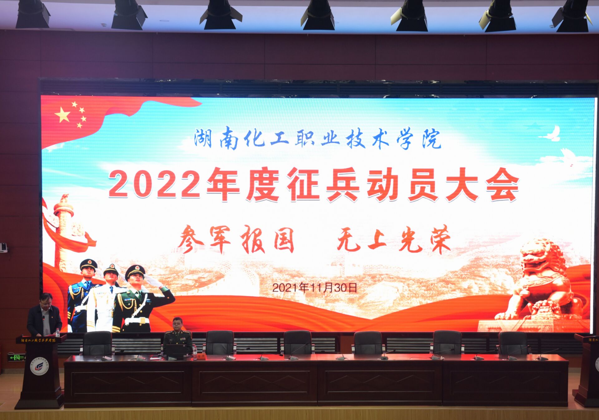 11月30日下午,我校在图书馆二楼报告厅召开学校2022年度征兵动员大会,湖南省株洲军分区司令员张台华、校长陈超、株洲军分区政治工作处主任胡小剑、荷塘区人武部政治委员胡喜林、副校长胡颖蔓、株洲市国防教育办公室谭建雄科长等领导出席,学校人民武装部、各二级学院党总支副书记、征兵干事、毕业班辅导员及近300名应征青年大学毕业生代表参会,会议由校长陈超主持。
