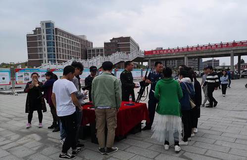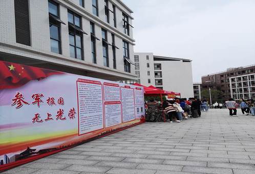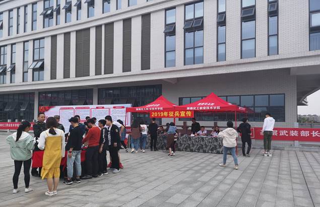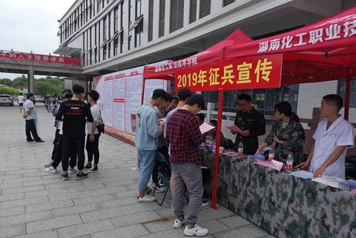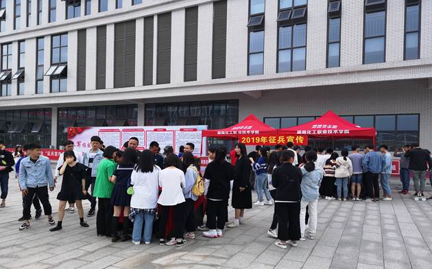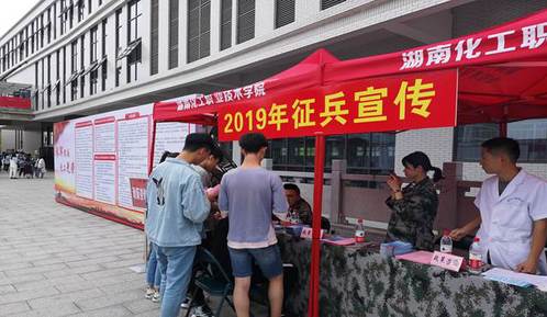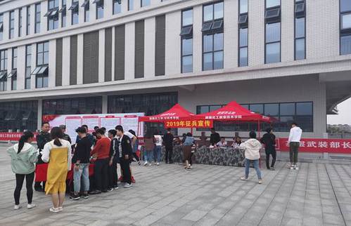 近日,在湖南化工职业技术学院二食堂前坪,“参军报国 无上光荣”的红色宣传展板格外醒目。湖南化工职业技术学院党委人民武装部全面开展征兵动员工作,要求各二级学院召开征兵工作专题会议、开展征兵主题教育班会、设置征兵宣传展板等形式进行征兵动员工作。4月18日,株洲市军分区、荷塘区人民武装部在湖南化工职业技术学院组织开展了“征兵宣传进校园”活动。在活动现场,通过现役军人和军医的动员讲话、征兵宣传板和军械展示、退役复学大学生士兵宣讲、现场应征咨询等方式深入开展征兵宣传,动员和鼓励适龄大学生携笔从戎献身国防事业。