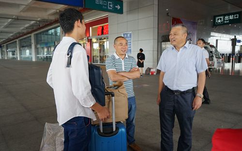 王雄伟校长与学工处处长汪发亮等一道在高铁站与新生交流