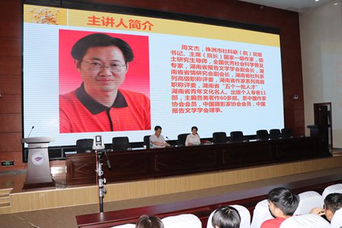为培育和提升在校学生人文素养,湖南化工职业技术学院学工部(处)特邀全国优秀社会科学普及专家、国家一级作家,株洲市社科联党组书记、主席周文杰教授来校进行《读书与人生》讲座。6月13日晚自习时间,该校分管学生工作的副校长胡颖蔓主持,在学校新校区图书馆二楼大报告厅,500余名师生聆听了专家讲座。