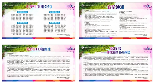 ——兵马未动,粮草先行。录取工作一结束,学校就准备好《高校学生及家庭情况调查表》、《生源地信用助学贷款政策宣传资料》、《新生入学须知》、《入学教育课程须知》、《高校缴费操作指引》、《新生报到信息采集表》、《新生报到程序表》和《招生简章》等资料随同《录取通知书》一并寄发给学生,使学生第一时间感受学校关怀,提前了解学校概况和大学生活,做好入学准备。假期,学校订购了质优价廉的军训服和生活用品,供学生选购。9月7日,学校召开迎新工作协调会,对迎新工作进行周密部署和安排。制定了《迎新工作方案》,确了职责分工,为迎新工作的顺利开展奠定了扎实基础。为了欢迎2018级新生和家长的到来,学校积极营造热情氛围,制作了版式新颖的欢迎词立牌、内容丰富的空飘和主题鲜明的拍照背景板免费为新生及家长拍照。