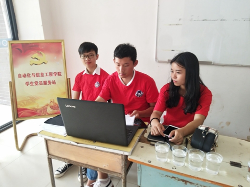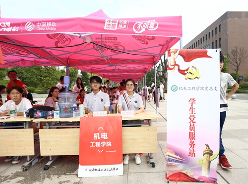 ——党员亮身份,迎新当先锋。为发挥党组织战斗堡垒作用和大学生党员先锋模范作用,激励广大党员践行社会主义核心价值观,推进“两学一做”学习教育常态化,二级学院迎新点设立学生党员服务站,学生党员佩戴党徽,主动热情服务新生及家长。