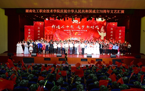 为庆祝中华人民共和国成立70周年, 9月28日下午2:40,学校在大礼堂举行了“辉煌七十载,筑梦新时代”文艺汇演。学校党委副书记、校长王雄伟,党委副书记刘毅,副校长易卫国、隆平、王为、童孟良,党委委员、组织部部长张麦秋,各二级学院院长、党总支书记和学校相关职能部门领导及教师代表、学生代表共同观看了演出。