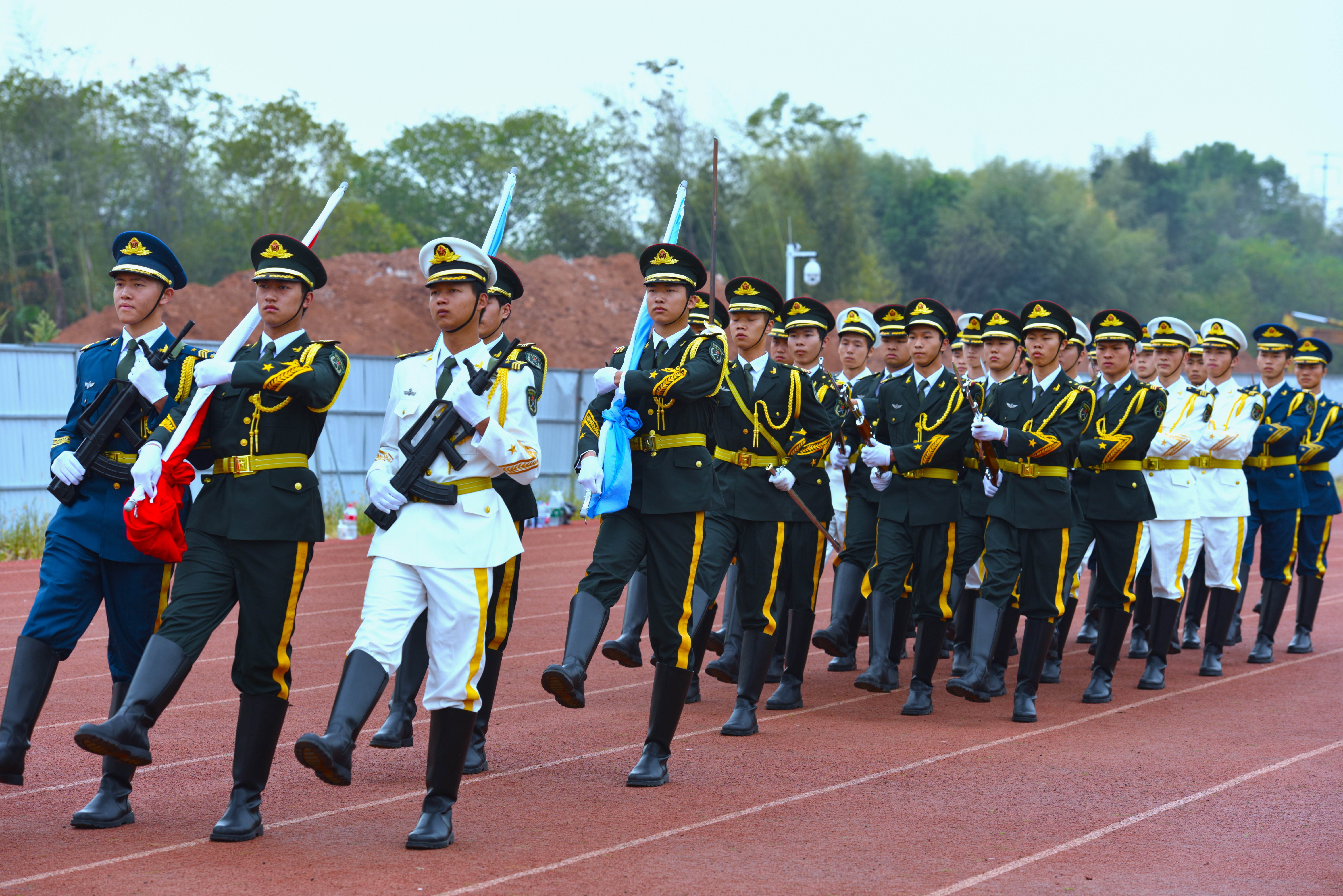 大会伊始,庄严的国歌响起,全体起立向国旗行注目礼,全场气氛肃静而庄严。升旗仪式结束后,身穿迷彩服的5900多名新生一起唱起了校歌,清脆嘹亮的声音响彻整个田径场。
