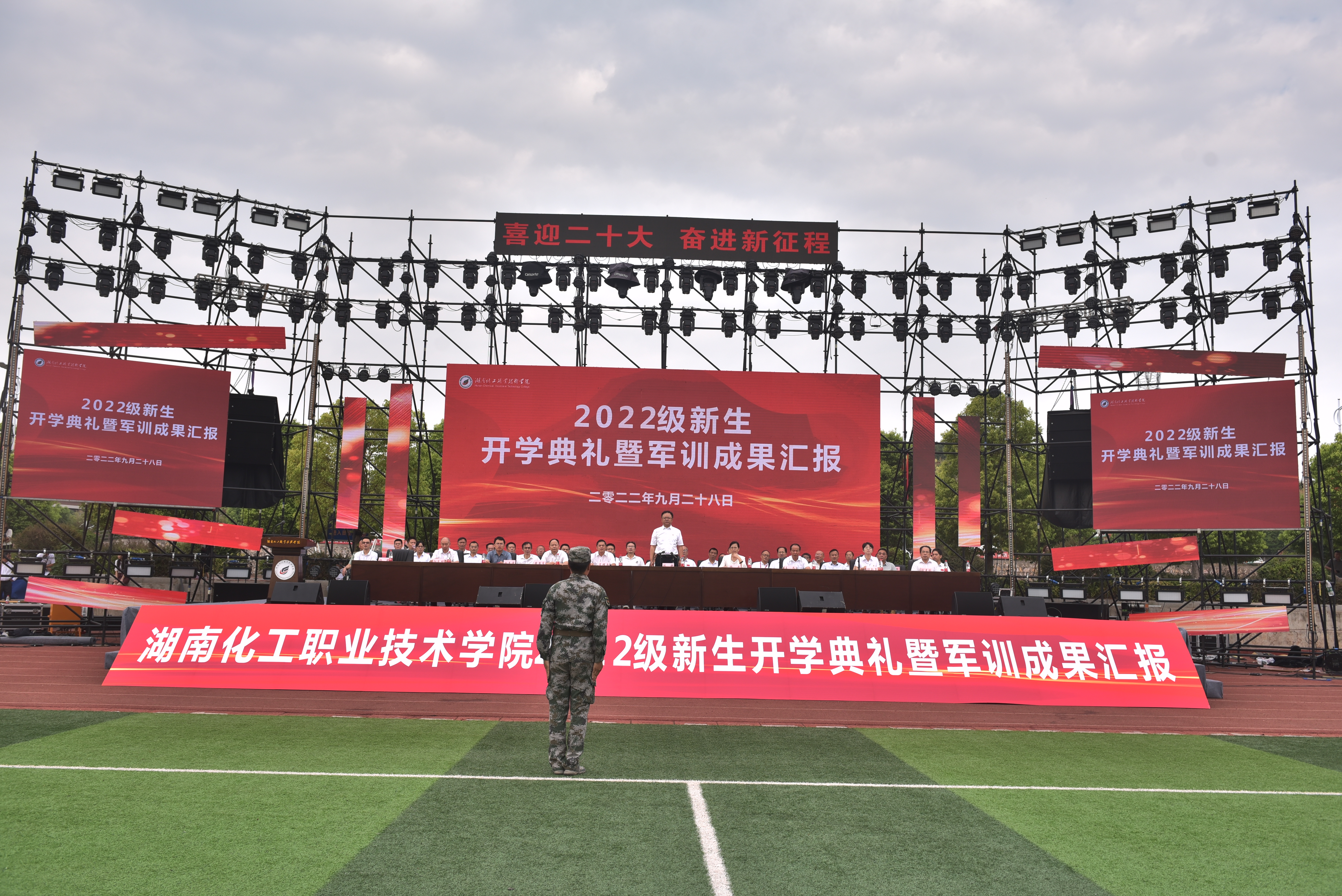 9月28日上午9:00,我校在田径运动场举行2022级新生开学典礼暨军训成果汇报大会。学校全体校领导,军训总教官杨柳,学校各各职能部门主要负责人、各二级学院院长、党总支书记、党总支副书记、全体专职辅导员和新生兼职辅导员、学工部、团委全体成员参加了会议。大会由学校副校长胡颖蔓教授主持。