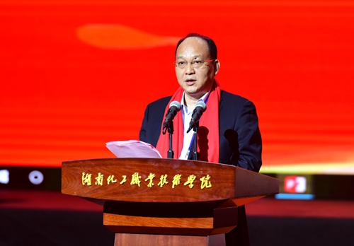 校长王雄伟在致辞中回顾了学校60年的发展历程与办学成就,展望了学校未来发展的美好愿景。他说,六十载栉风沐雨,薪火相传,湖南化工职业技术学院顺应民族振兴的时代召唤,肩负传承教泽的历史使命,主动适应经济社会发展新趋势、新常态,积极推动转型发展,大力实施内涵提升、特色发展和开放办学战略,已经发展成为拥有在校师生一万三千余人、专业体系完备、师资力量雄厚、教育教学质量过硬、科研成果丰硕、办学特色鲜明的全省乃至全国知名高职院校;六十载沧桑砺洗,春华秋实,一代代化院人扎根于这片职教热土,汲取先贤智慧,胸怀崇高理想,艰苦卓绝,玉汝于成,铸就了一部可歌可泣的创业史、奋斗史和改革发展史,积淀形成了艰苦创业、自强不息的进取精神与学而不厌、诲人不倦的治学品格以及明德至善、负重担当的家国情怀;六十载春风化雨,芳菲成林,校友们互爱互助,携手共进,建功立业,在各行业各领域获得了很高的赞誉,为社会、为国家做出了突出贡献,为母校赢得了荣誉和光彩;六十载时光流转,记忆永恒,在各级领导、社会各界和广大校友的关心与支持下,在一代代化院人的无私奉献中,湖南化工职业技术学院从小到大,在竞争中求生存求发展,书写了光辉的篇章。王雄伟表示,庆祝湖南化工职业技术学院60周年华诞,既是对光辉历史的检阅,也是新的跨越的开始。站在新的历史起点上,全体化院人将为了化工职院更高的荣耀,紧抓机遇、干事创业;为了化工职院更好的发展,勇于担当、努力拼搏;为了化工职院更美好的未来,开拓创新、奋发进取。学校致力于建设“当地离不开、业类都认同、国际可交流”的人民满意的高等职业学院,创造无愧于新时代的新辉煌。
