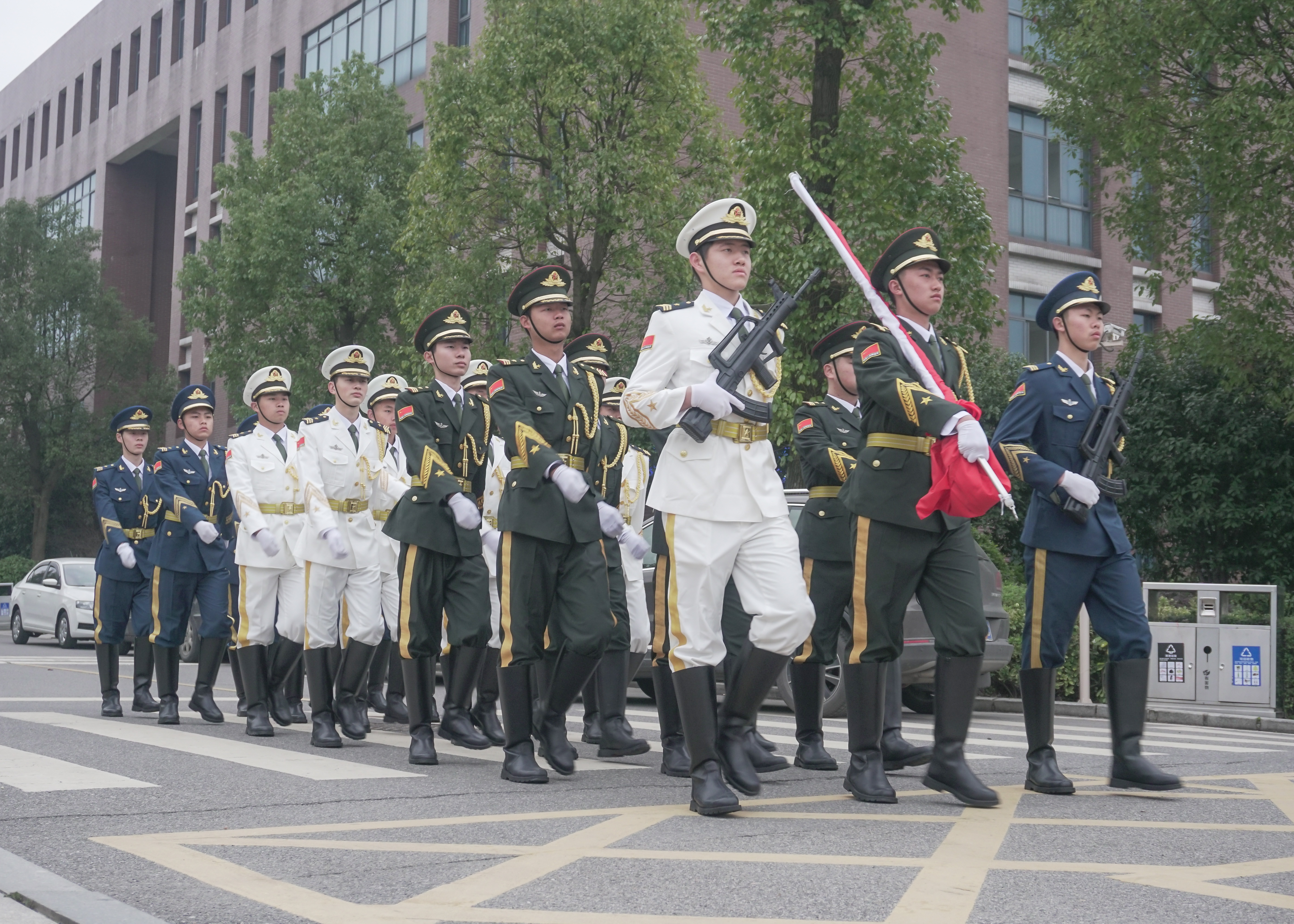 迎着清晨第一缕阳光,我们相聚在国旗下。国旗护卫队迈着整齐的步伐,护送国旗入场,伴着庄严嘹亮的国歌声,在场全体师生怀着崇敬与激动的心情,凝视着五星红旗冉冉升起。