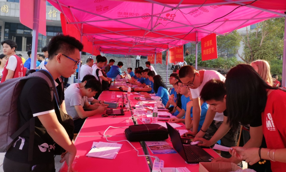 9月20日—21日,是我校新生正式报到的日子,9月19日上午,红色的帐篷一顶顶在学校图书馆前坪搭起来,迎新牌和示意图竖起来,二级学院各迎新点人员到位,学校提前一天投入迎新工作状态了。今年全国高职院校扩招百万,湖南化工职业技术学院新增指标1900余个,其中单招3900多人,截止9月21日晚上10点,报到人数达到5768人。