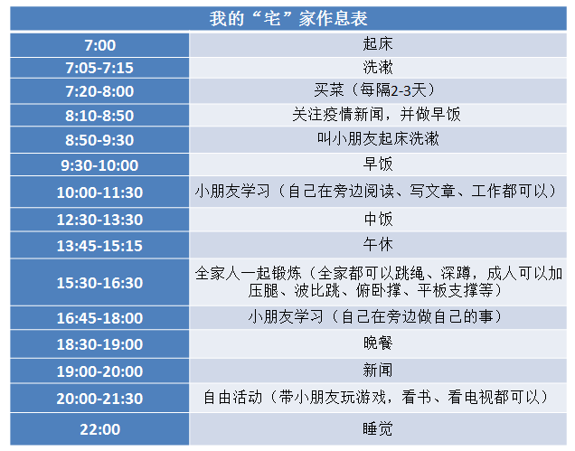 学校心理咨询中心蒋老师在进行网上心理咨询服务的时候,给学生晒出了自己的假期生活作息表,建议咨询的学生在家里用多种方式锻炼身体,过有规律的生活。