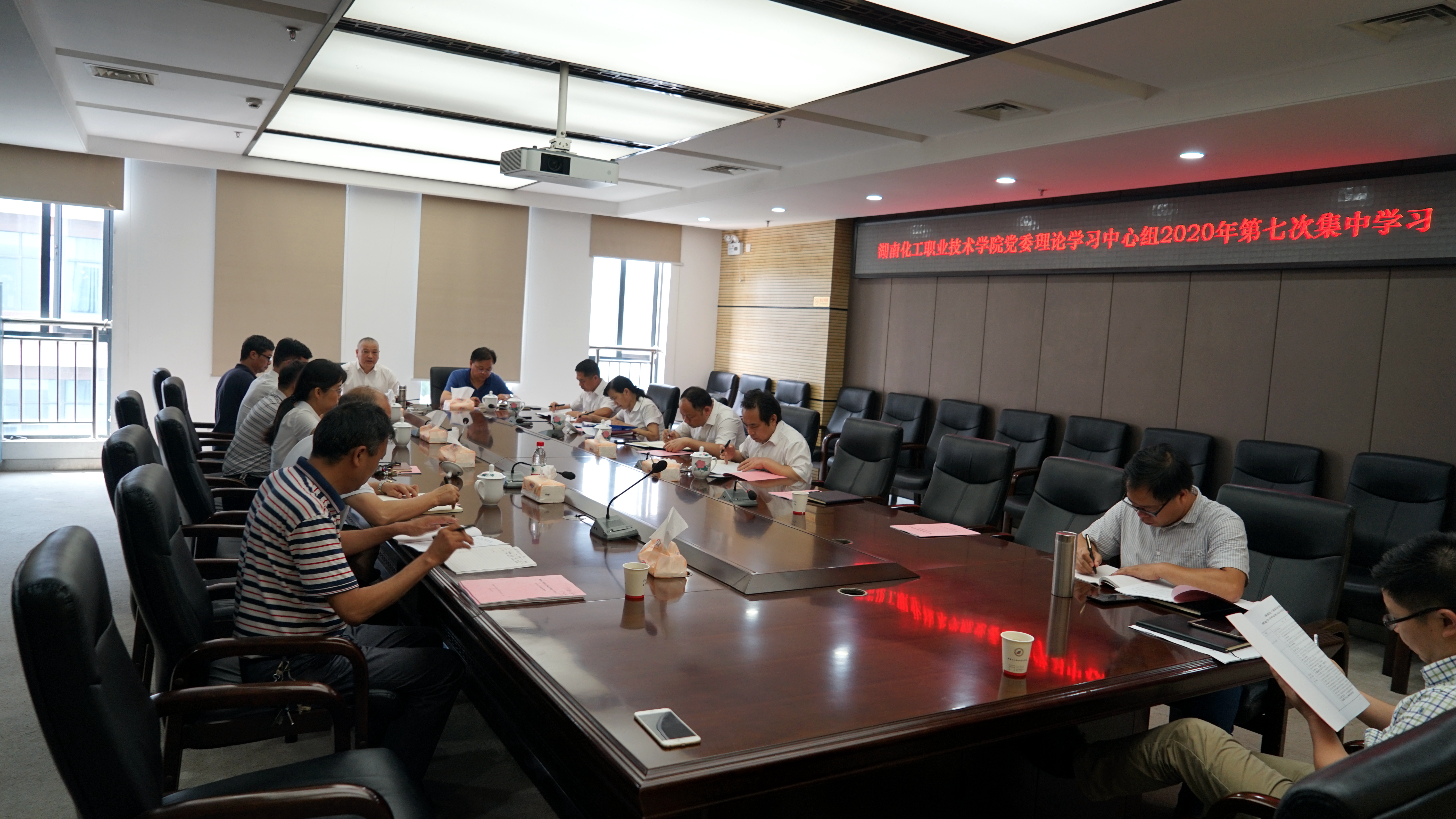 7月17日,湖南化工职业技术学院党委理论学习中心组在行政楼三楼会议室举行2020年第七次集体学习会。学校党委理论中心组成员参加学习会,党委书记王雄伟主持学习会。