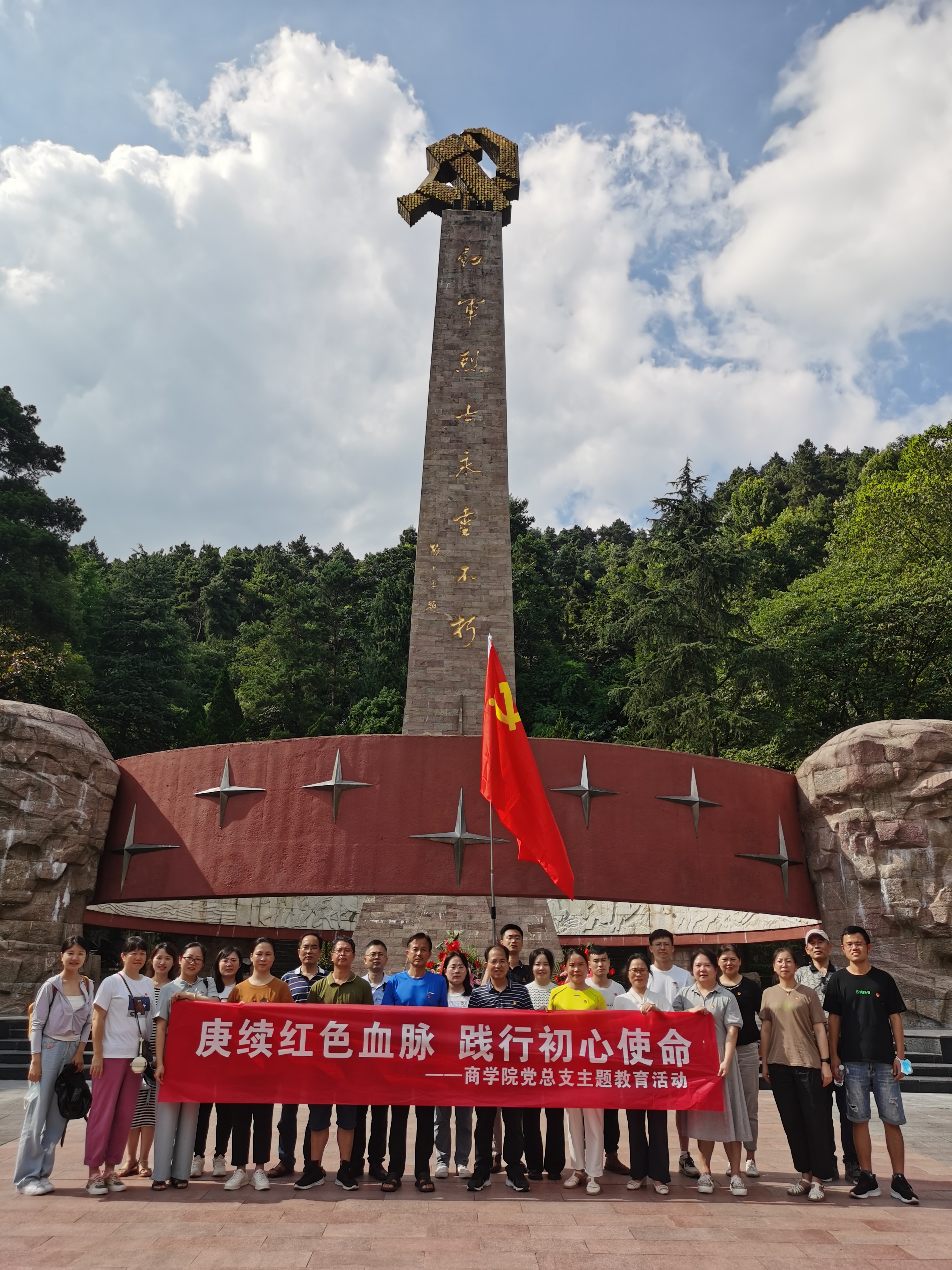 为迎接党的二十大胜利召开,进一步加强党史学习教育,教育引导党员不忘初心、牢记使命,商学院党总支于7月9日-7月13日组织全体教师党员赴遵义会议会址、长征纪念馆、红军山烈士陵园、娄山关战场遗址、红岩革命纪念馆等地开展“赓续红色血脉,践行初心使命”主题教育活动。