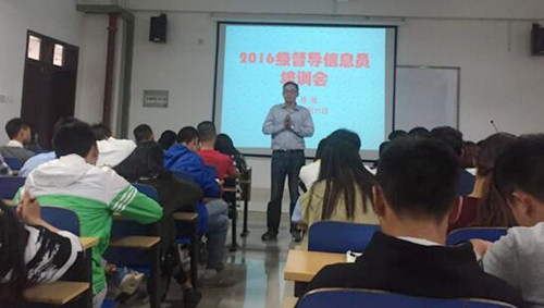 10月11日下午4:00,2016级督导信息员培训会议在化工制药楼113教室举行,2016级各班班长及督导处全体成员参加会议,督导处处长贺新元作2016级督导信息员培训讲话。