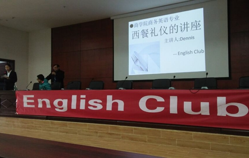 我校英语俱乐部是以商务英语专业学生为主的大学生学习性社团,由商学院刘婷老师担任指导老师。在商务英语教学过程中,刘婷老师感觉到,在现代社会,学生懂得西餐礼仪,更有利于交际。这不仅体现一个人对西方文化的尊重和了解,更能体现一个人的涵养和文化素质。尤其是对于现代的大学生而言,掌握西餐礼仪才能更好的适应社会发展的需要。针对这一现象,她指导的英语俱乐部决定举办一场关于西餐礼仪的讲座。在英语俱乐部学生精心组织策划下,活动取得了圆满成功。