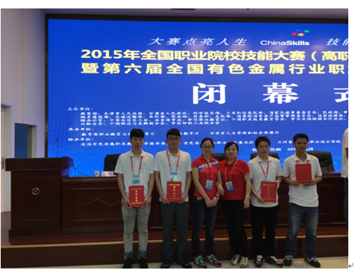 6月19日,2015年全国职业院校技能大赛甘肃分赛区暨第六届全国有色金属行业职业院校技能大赛在甘肃兰州闭幕。本次大赛共有来自全国18个省市,自治区的29所高职院校的270余名选手参赛,我院制药与生物工程系冶金技术专业组队参赛,并荣获了金属冶炼赛项团体二等奖。