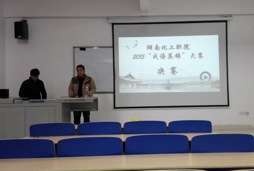 为弘扬国学经典,传承中华传统文化,培养学生对祖国语言文字的感情,丰富校园文化生活,提高学生语文素养,12月22日下午两点,湖南化工职业技术学院2015年技能节项目之一——首届“成语英雄”大赛决赛的战火在化工制药楼218教室点燃。