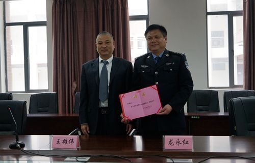 我校党委书记刘望致欢迎词并介绍了学校安保工作特色。为加强学校法制建设,进一步增强校警联动,会上还举行了法制副校长聘任仪式,聘请田心分局局长龙永红为法制副校长,校长王雄伟向法制副校长龙永红颁发了聘书。
