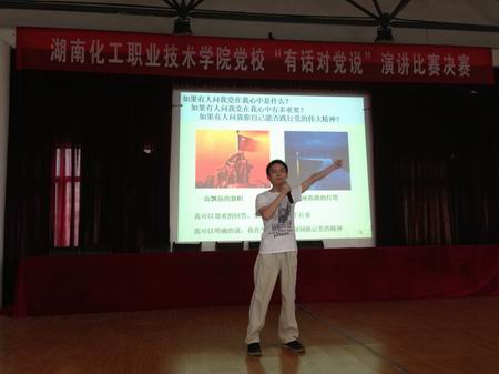 5月13日,学院党?!坝谢岸缘乘怠敝魈庋萁脖热芫鋈谌氲郴肿用腔斡胂?,经过层层选拔落下了帷幕。此次比赛是由学院党校主办,来自各系的选手和入党积极分子代表齐聚一堂,向党诉说自己的心里话。