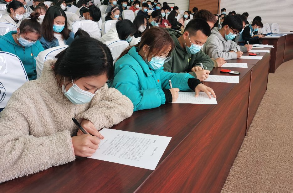 (图为与会毕业生党员签承诺书)