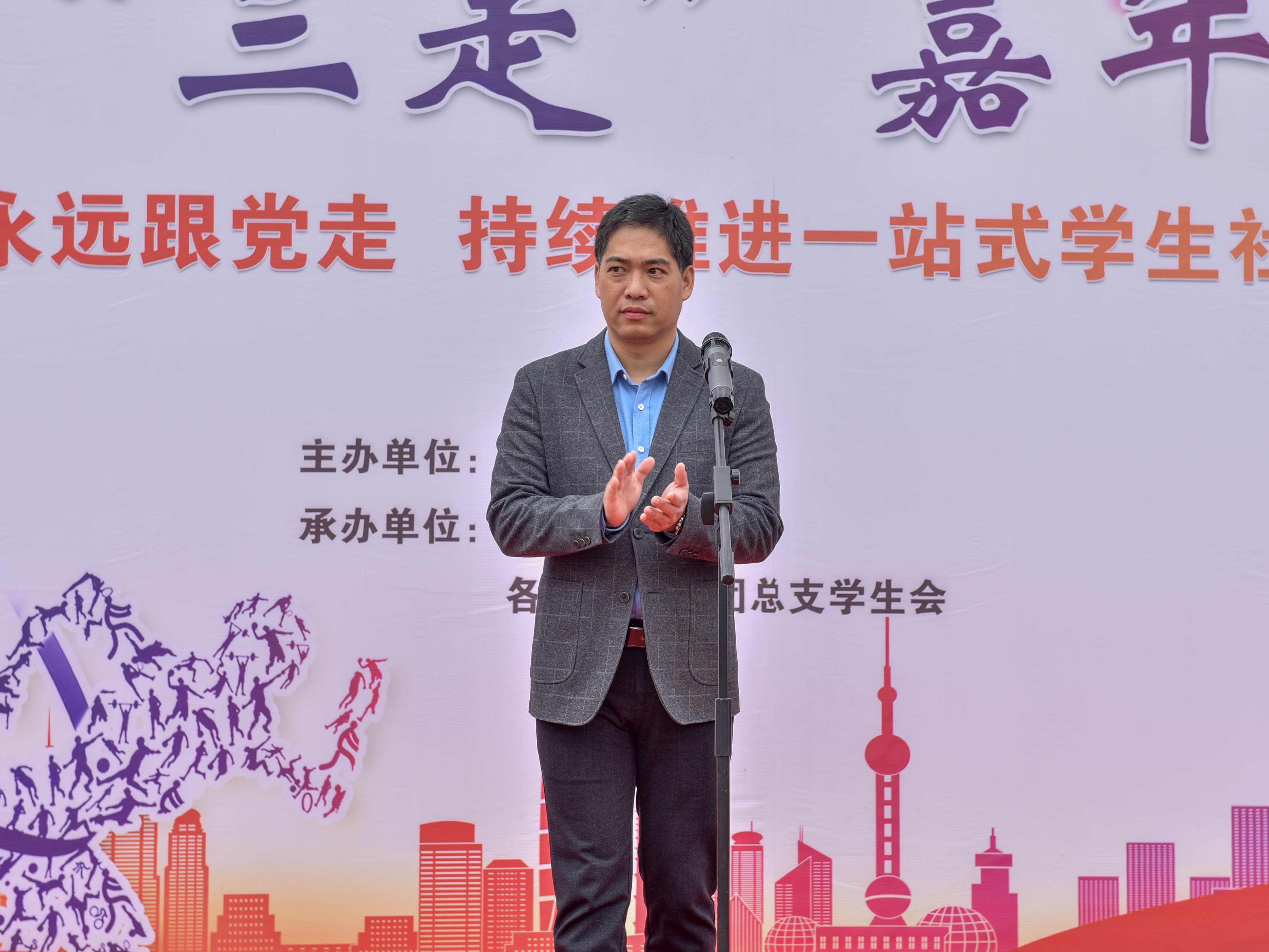 学工部副部长李奇志宣读《关于开展第22届宿舍文化节的通知》。校学生会主席杨雷向全体学生发出倡议,倡议同学们积极参与宿舍文化建设,一起成为校园健康文明生活的倡导者、践行者、受益者。