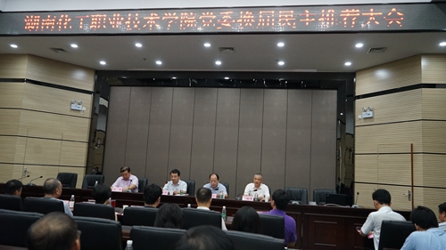 16:30,紧张的中层正职谈话听取意见之后,召开湖南化工职业技术学院党委换届民主推荐大会??疾熳樽槌ね踅ɑ窘械澄唤烀裰魍萍鲇泄刈⒁馐孪畹慕不爸?,省纪委驻省教育厅纪检组副组长谭知和同志对于换届选举纪律进行了再三强调,他表示,相信湖南化工职业技术学院党代表能够严守换届选举纪律,同时也表示,一旦发现有问题苗头,绝不心慈手软,冒头就打。