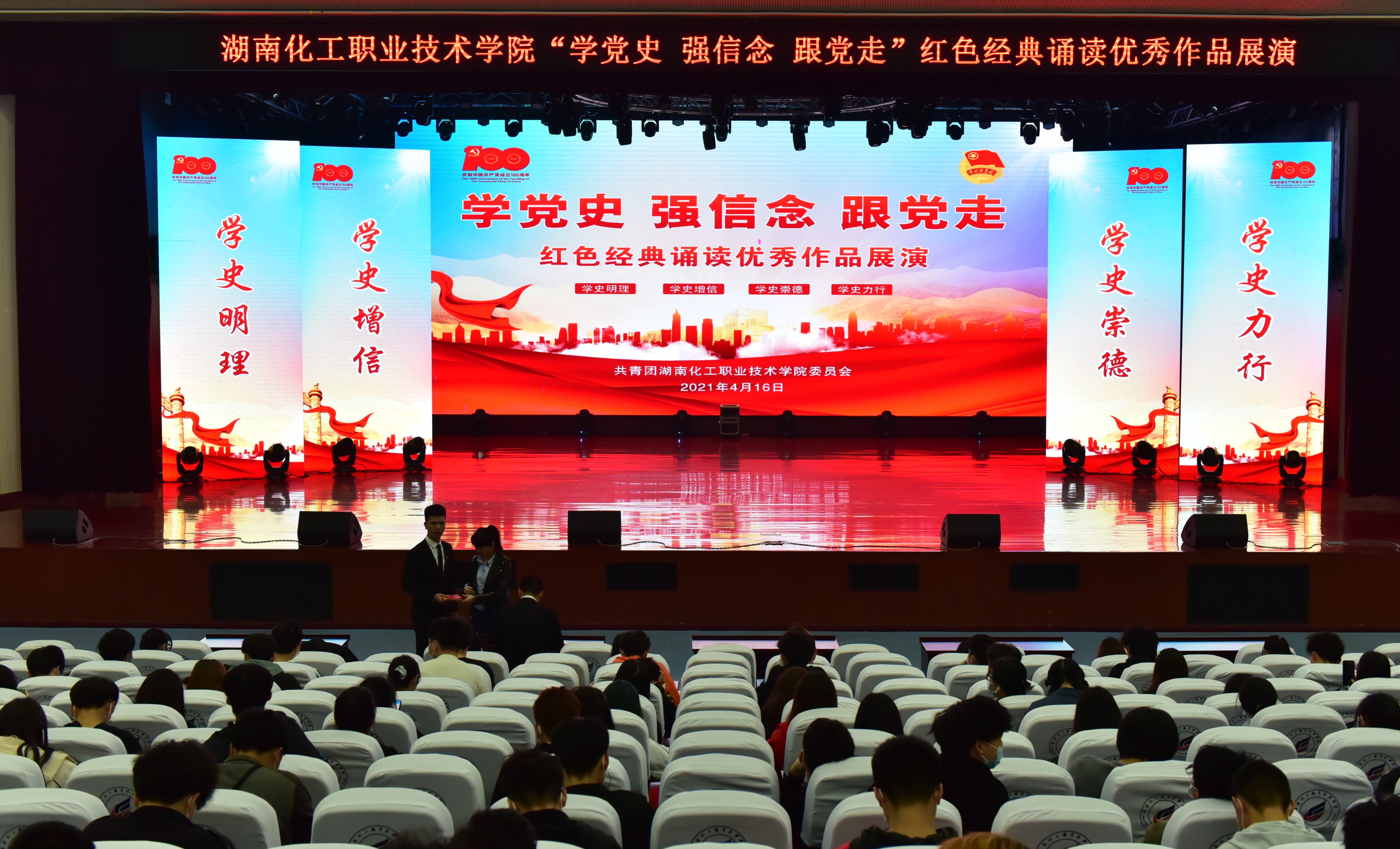为纪念中国共产党建党100周年,激发广大青年学生在党史学习中走前列、当先行,开拓奋进、建功立业的使命感和责任感,热情讴歌中国共产党领导中国革命和建设取得的伟大成就。4月16日下午,校团委在大礼堂隆重举行了“学党史 强信念 跟党走”红色经典诵读优秀作品展演活动。团省委基层建设部部长邓资益、湖南化工职业技术学院副校长胡颖蔓、团市委副书记钟洁等领导出席此次活动。