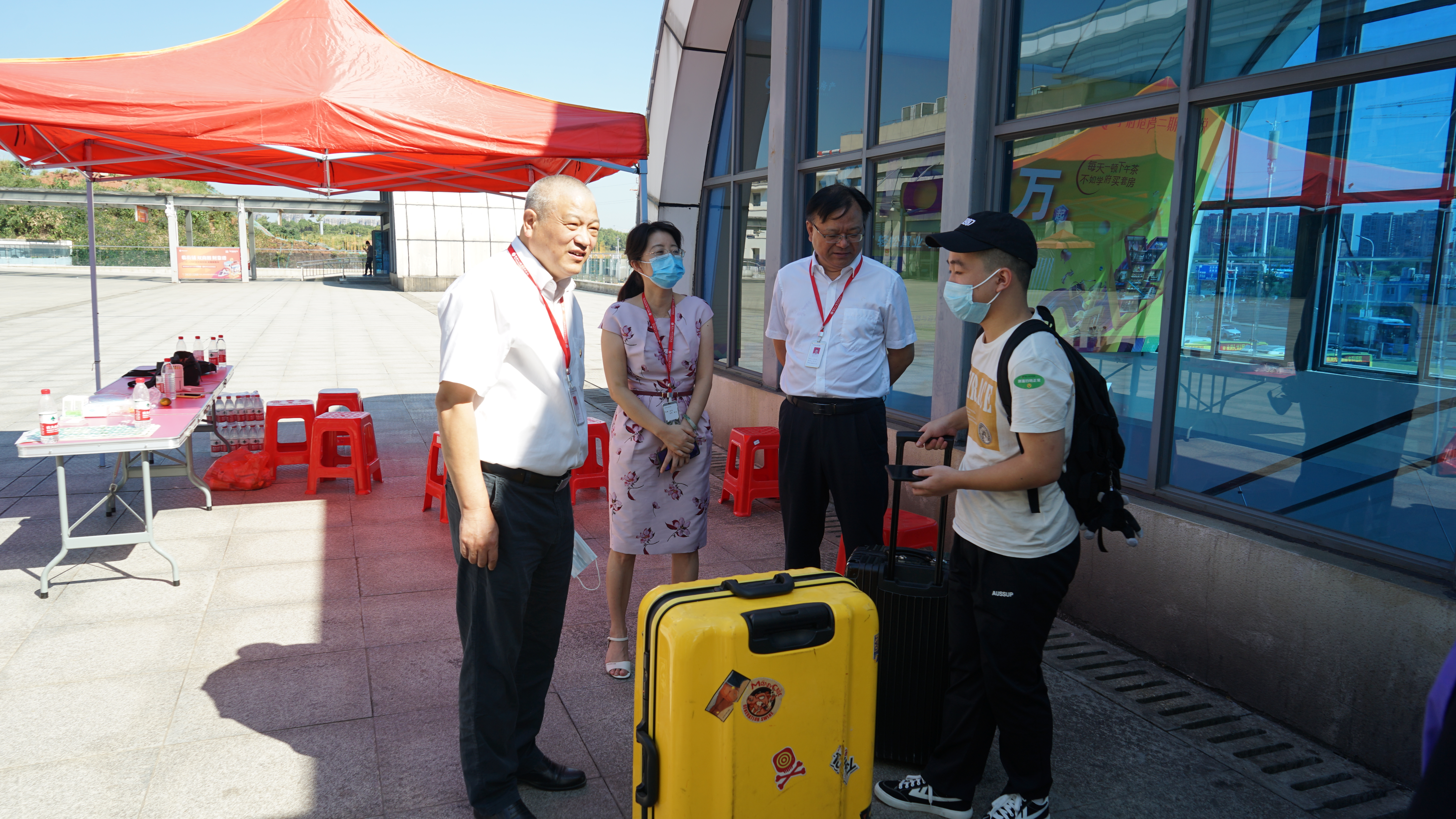 校领导实地察看了大丰迎新站点、火车站迎新站点和株洲西站迎新站点,详细了解了迎新工作各环节的进展情况、迎新中疫情防控工作情况以及存在的困难,对各部门的迎新工作给予了充分肯定,向辛勤工作在迎新第一线的工作人员和学生志愿者表示了亲切慰问和感谢,同时勉励大家要进一步增强服务意识,认真负责,紧密配合,做好各方面的迎新接待工作,让新生和家长满意放心。