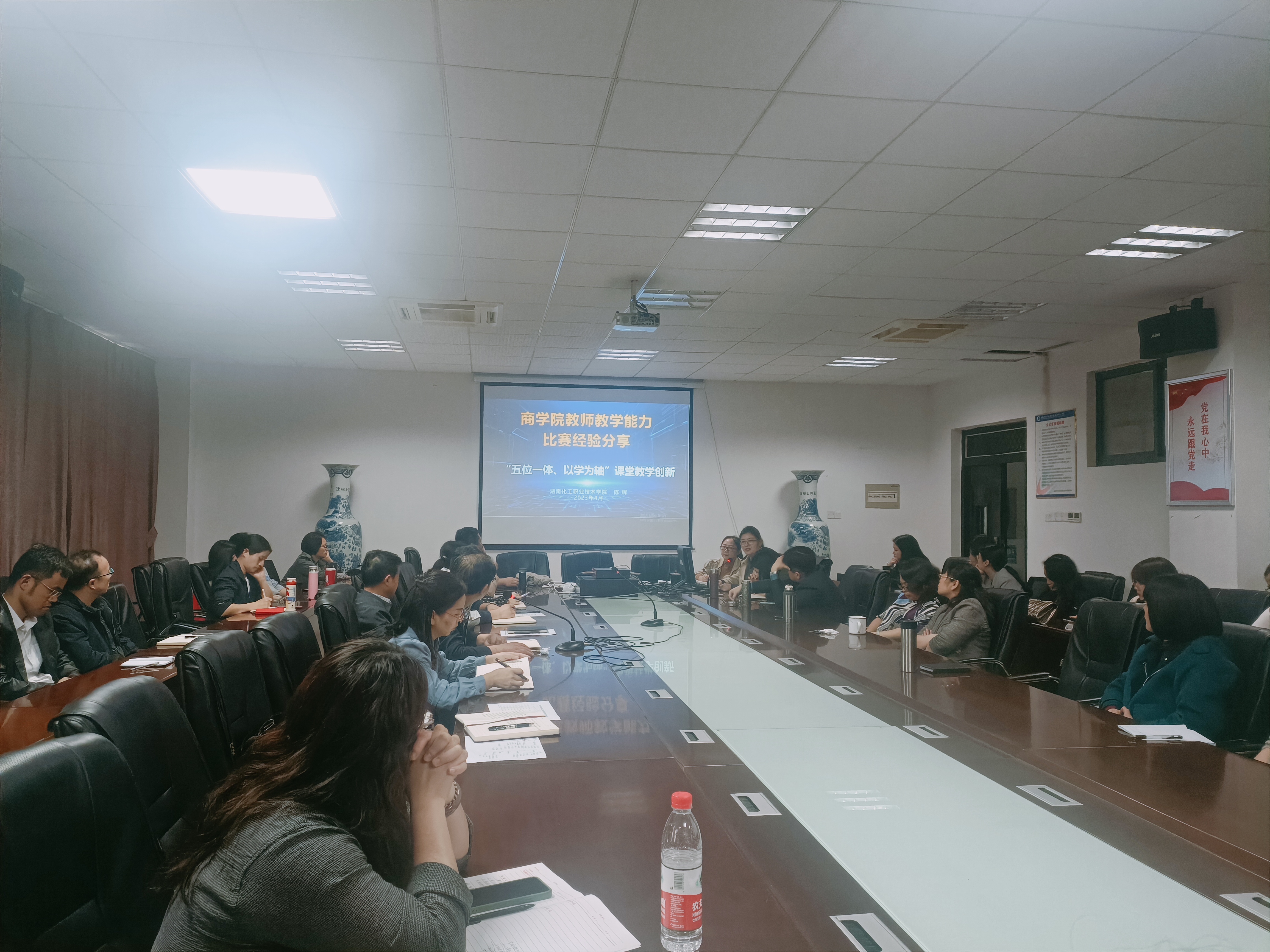 4月11日下午,商学院在励志楼135会议室举行教师教学能力比赛专题分享会,特邀2022年教师教学能力比赛陈辉、王景、蔡丽、胡文晓国赛获奖团队开展经验分享。